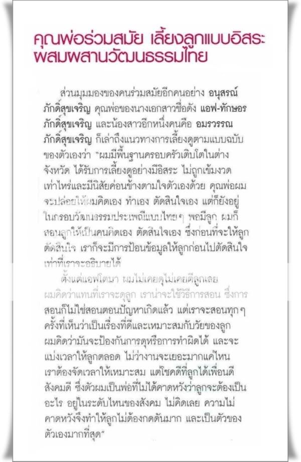 Anusorn Paksukjareon是知名女演員AFF和她妹妹的爸爸。Anusorn Paksukjareon談到他是如何栽培他的女兒: